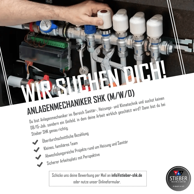 Die Stieber SHK steht für zuverlässige Arbeit rund um Heizung, Sanitär und moderne Gebäudetechnik. Als kleines, eingespieltes Team legen wir großen Wert auf Qualität, saubere Arbeit und ein gutes Miteinander. Bei uns bist du keine Nummer – sondern ein wichtiger Teil des Teams.